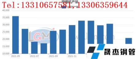 5月份國內(nèi)挖掘機產(chǎn)量為20937臺,環(huán)比4月份減少約6956臺。同比21年同期減少約15165臺。