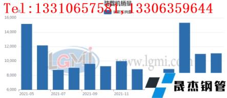 5月份國內(nèi)裝載機銷量為11059臺,環(huán)比4月份增加84臺。同比21年同期減少約4086臺。