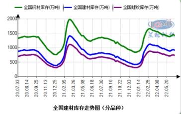 據(jù)云商平臺監(jiān)測數(shù)據(jù)顯示:2022年6月24日,全國厚壁鋼管社會庫存指數(shù)為154.9點,比上月上升2.50%,比去年同期上升10.92%;其中建材社會庫存指數(shù)為221.1點,比上月上升1.43%,比去年同期上升16.58%;螺紋鋼社會庫存量為734.59萬噸,比上月上升1.83%,比去年同期上升15.38%;伴隨著無縫鋼管廠家部分檢修減產(chǎn),及需求的緩慢釋放,庫存上升勢頭開始有所放緩,臨近月末開始由升轉(zhuǎn)降。