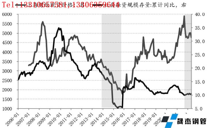 筆者選取地產行業中用鋼最多的一個環節——地產新開工面積,作為表征螺紋鋼需求變化的核心指標。從上圖可以看出,2013年之后,為消除2008年金融危機之后宏觀政策的影響,以及2012年的“投資熱”,貨幣政策出現適時適度的調整。受此影響,地產行業也逐步進入調整周期。2013年年中至2015年年底,地產新開工面積同比大幅下降。這也意味著當時螺紋鋼的需求處于持續下降周期中。